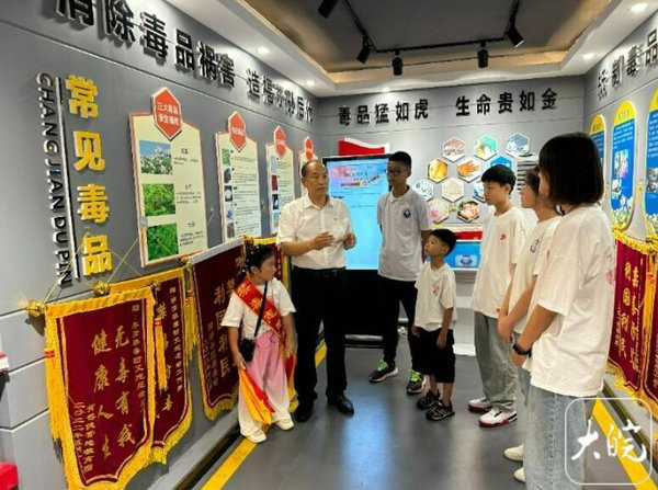 李彦正在给社区青少年科普禁毒知识。