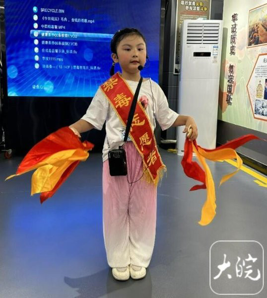 小小禁毒志愿者正在展示禁毒快板。