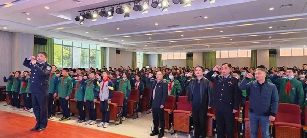 在四川省成都强制隔离戒毒所党委委员、副所长谭飞带领下,参加活动的师生们共同进行集体禁毒宣誓。