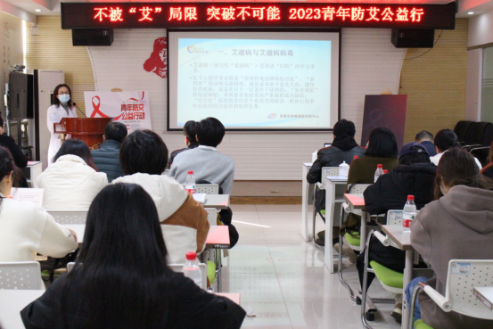 首先,区疾病预防控制中心的厉洁医师详细介绍了艾滋病的传播途径、致病机理和预防措施,让大家了解HIV病毒、AIDS等艾滋病基本知识。通过互动环节宣传预防艾滋病相关知识,帮助青年了解、预防艾滋病,并树立反歧视意识及非评判态度,要理解、关心、正视艾滋病毒感染者及艾滋病人。现场社区网格员结合条线工作,发放了要爱不要“艾”hiv单阳家庭防护、青春校园 防艾有我防艾、禁毒知识、创卫知识等宣传手册。