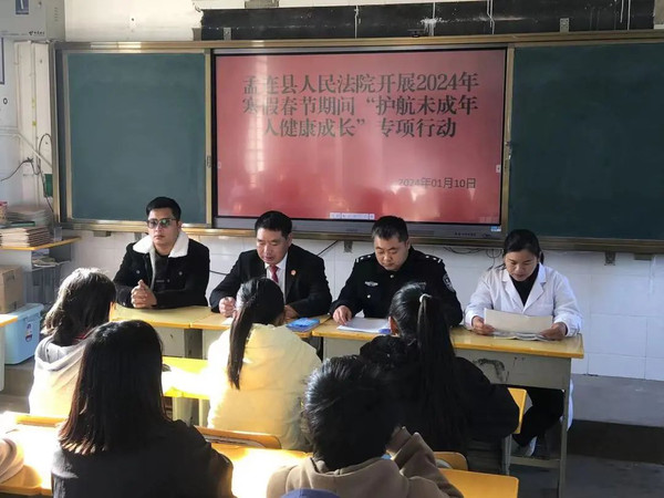 寒假将至,为进一步提高未成年人的法治观念,增强未成年人的法律意识和自我保护意识。近日,孟连县法院班子成员与县卫健委、派出所组成普法宣讲团分赴勐马镇、公信乡6所中小学开展“护航未成年人健康成长”专项普法行动。