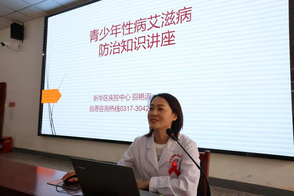 一首防艾背景歌曲吸引华北工业学校广大学生来到学校阶梯教室,大家落座后,区疾控中心防艾工作人员深入浅出的讲解了什么是艾滋病、艾滋病的传播途径、如何预防艾滋病等基础知识,通过讲座让学生们了解到,艾滋病就在我们身边,预防艾滋病要从自身做起。