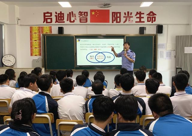 艾滋病与毒品是一对如影相随的“噬人魔”,吸毒能够传播艾滋病病毒已是众所周知的事实。在播放禁毒动画宣传短片《预防艾滋,远离毒品》后,龙湖区禁毒普法宣讲团成员刘高鉴警官为启阳学校100多名七至九年级学生讲解了毒品的种类、危害以及部分吸毒行为传播艾滋病病毒的途径,同时开展预防青少年药物滥用宣传,从药物依赖性、易被滥用的药物和精神活性物质、药品与毒品的区别、药物滥用的危害讲到滥用药物的高危人群、青少年如何预防药物滥用、如何做到合理用药,重点讲述了滥用依托咪酯、右美沙芬等精神药品的危害,呼吁同学们牢固树立安全防范意识,平时要养成良好的用药习惯,坚决杜绝药物滥用,珍爱生命,远离毒品。