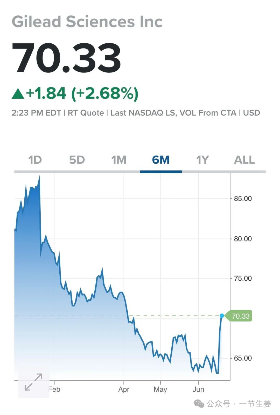 因此,不管怎么看,来那卡帕韦将会是抗病毒药物发展史上的另外一个里程碑事件。毫无疑问,股市对此也做出了反馈,吉利德一直下行股价突然得到了拉升,连续两天出现上涨,涨幅累计10%。