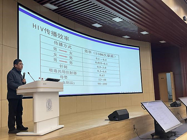 2024年11月7日下午,应北京化工大学校医院邀请,北京市朝阳区疾病预防控制中心性病艾滋病防治科姜树林博士在北京化工大学“疾控与健康大讲堂”上为在校本科生及研究生进行了艾滋病防治知识讲座。