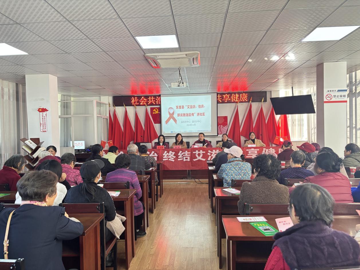 为进一步提高艾滋病基本知识普及率,提升辖区居民健康意识和自我防护能力,东至县尧渡镇团结社区联合县疾控中心、县妇计中心共同开展“艾滋病、性病、肝炎”防治宣传进社区活动,为辖区居民开展健康知识讲座,同时发放宣传折页、宣传品等,营造全民参与“知艾防艾”的良好辖区氛围。