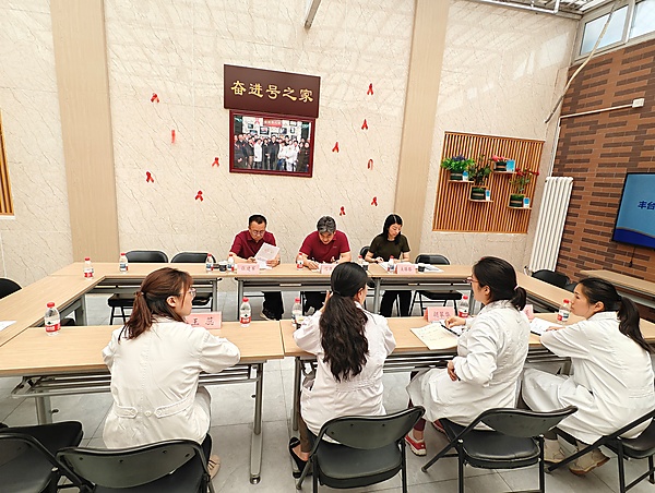 为进一步促进社区药物维持治疗工作的规范化管理,确保工作安全有序运行,2025年5月21日下午,丰台区卫生健康委副主任、区疾控中心负责人信振江带队,区卫生健康委公共管理科马婧、区疾控中心副主任张建军及性病艾滋病防制科相关负责人一行5人对蒲黄榆社区卫生服务中心社区药物维持治疗第七门诊进行实地督导检查。蒲黄榆社区卫生服务中心主任刘宏、社区药物维持治疗第七门诊负责人胡翠华等相关工作人员迎检。