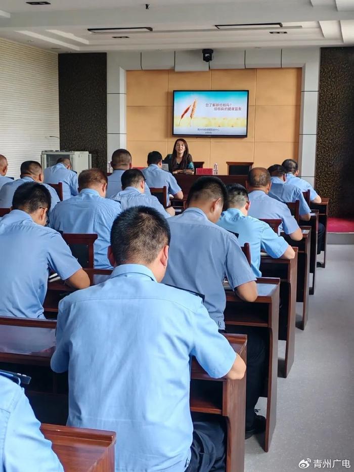 青州市疾控工作人员走近监室就艾滋病和结核病基本概念、传播途径、病理情况、流行的社会危害性、对人体的维护以及如何预防、控制措施等相关知识,用通俗易懂的语言向羁押人员讲解,并告诫他们要洁身自爱,远离毒品,加强身体锻炼,养成良好的生活卫生习惯,增强羁押人员健康意识,并为羁押人员解答相关疑问。