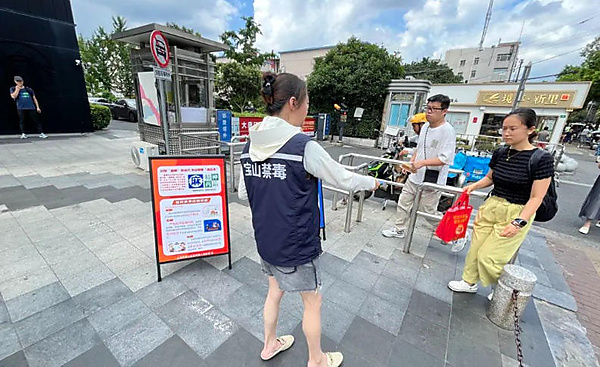 8月初,禁毒社工和禁毒志愿者共同来到殷高西路遇道广场开展禁毒宣传,向过往的路人和附近居民宣传毒品危害知识。
