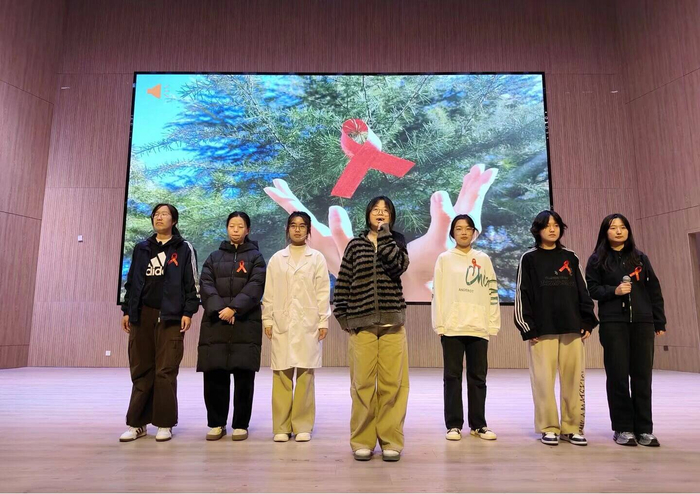 活动尾声,社团的防艾志愿者们带来合唱《天空有雨,伞下有你》,用温暖的歌声汇聚成爱的海洋,谱写美好愿景,他们一起发出有力的青春倡议——号召青年学生既做健康的守护者,也做温暖的“撑伞人”,此次合唱也成为活动最动人的“防艾宣言”。